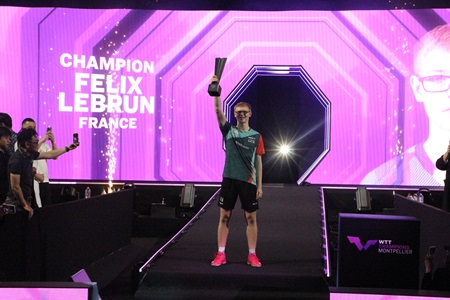 Il a dû apprécier à distance le parcours de deux des « tourmenteurs » des pongistes… chinois, Félix et Alexis Lebrun, le premier s’offrant à la Sud de France Arena un succès historique pour le ping tricolore, accentuant un peu plus le phénomène Lebrun. « J’étais loin de penser en venant que je pourrais gagner ce WTT Champions. Certains des tournois que j’ai joués avant Montpellier ne se sont pas passés comme je l’espérais en simple (8e de finale du Grand Smash en Chine, 1/4 de finale des championnats d’Europe à Linz, Ndlr). Aux Jeux Olympiques, mon niveau de jeu a été moins bon qu’ici. En demi-finale, face à Lin Shidong (n. 2 mondial, tête de série n. 1), j’ai réussi le match parfait (4-0). A partir de là, j’avais une certaine confiance pour la finale contre Tomokazu Harimoto (n. 8 mondial, Japon) face auquel je restais sur trois victoires. Je ne me suis peut-être jamais senti aussi fort même s’il y a encore des points à améliorer. Et il s’agit de mon meilleur tournoi au niveau de la concentration », a analysé l’intéressé à chaud, tout sourire évidemment. Et « super content de savoir que je vais être durant un an, le tenant du titre de ce Champions à Montpellier », dixit celui qui n’a pu s’empêcher de monter sur la table après sa victoire. En cinq matches, il n’aura concédé que trois malheureux petits sets, en gagnant au passage 9 d’affilée entre celui perdu face à… son frère Alexis en quarts jusqu’au 4e de la finale. » Proprement hallucinant. A l’image du 10e point (gagné) du 3e set de ce duel fratricide où il a martyrisé Alexis, héroïque, les deux rivaux d’un soir se regardant, presque « hilares » après le show.