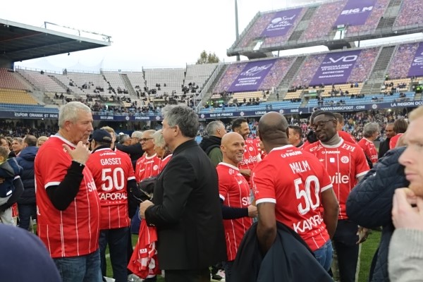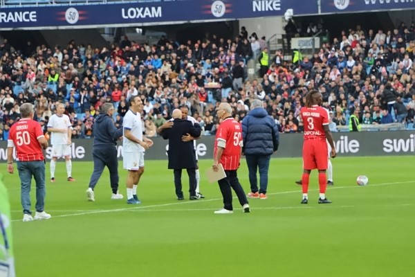 Dame météo ayant fait un petit clin d’oeil aux organisateurs en les préservant de la pluie pourtant annoncée, le « Match des Héros » entre les « Anciens du MHSC » de Michel Mézy et René Girard et le Club des Internationaux français (CIF) d’Henri Emile, a pu se tenir dans de très bonnes conditions avec un coup d’envoi donné par le mythique Fleury Di Nallo avec un ballon descendu du toit par la mascotte Pailladinho. Il aura permis aux quelque 13 000 spectateurs présents de (re)voir en action les Laurent Blanc (une mi-temps dans chaque camp) et Robert, Bakayoko, Hilton, Bedimo, J. Marveaux, Estrada, Camara, Costa, Pitau, A. Mounier, Pionnier, Yanga-Mbiwa, Saihi, Utaka, Barbosa, El Kaoutari, Montano, Hoda Lattaf, Kabze, Dernis, Jourdren, Lacombe, rejoints par l’humoriste Paul Mirabel qui, sous la direction du local de l’étape, l’ex-arbitre international Damien Ledentu au sifflet, se sont « offerts » le scalp des Internationaux, soit les Pires, Porato, Chanelet, Fanni, Mathieu, Zubar, Carrière, Gonalons, Martins, Meriem, Menez, Piquionne, Rémy, Savidan et le « Mr bicyclette », Amara Simba… Une large victoire 5-1 (buts de Costa, Utaka, Camara, Kabze, Montano après l’ouverture du score par Pires) qui n’aura certes pas rapporté 3 points au classement de L1 pour le MHSC mais au moins comblé de bonheur acteurs comme spectateurs. Avec la traditionnelle 74e minute qu’il était plus encore question que d’habitude de respecter et que l’incontournable Loulou a dû tellement apprécier de là-haut