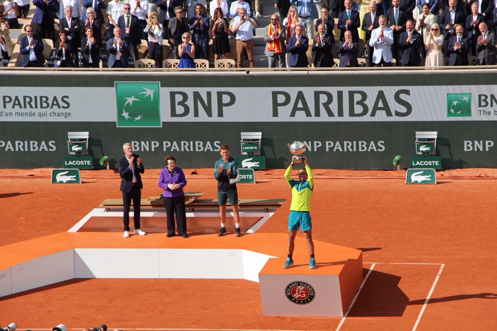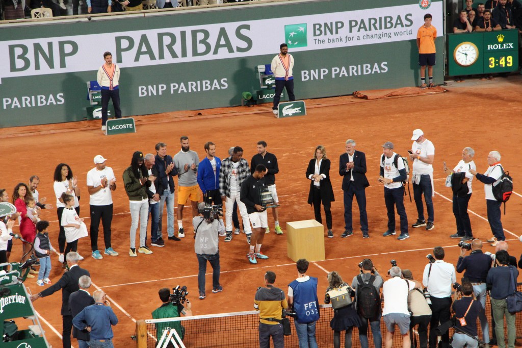 Cette cuvée 2025 sera riche en la matière avec dès ce dimanche de lancement du tableau principal celui réservé au maître des lieux, Rafael Nadal, retraité des courts depuis octobre 2024 mais qui sera bien présent Porte d’Auteuil. Le Majorquin a écrit parmi les plus belles pages de l’histoire de ces Internationaux, soulevant à 14 reprises la Coupe des Mousquetaires pour 19 participations. La FFT a organisé ce dimanche avant la night session une célébration de 45 minutes empreinte d’une émotion intense et dont le contenu avait été précieusement gardé secret. Entre les présents sur le Central tous vêtus d’un tee-shirt ocre ou blanc distribué à ceux et celles en possession du précieux sésame, une standing ovation de près de deux minutes, l’arrivée autour du « maître des lieux » en cours d’hommage de Roger Federer, Novak Djokovic et Andy Murray, ses rivaux majeurs durant deux décennies, le trophée souvenir remis par Gilles Moretton (président de la FFT) et Amélie Mauresmo (directrice du tournoi), l’empreinte de son pied ancrée à jamais sur le Central dans la continuité du filet, les olas « Rafa Rafa », l’énoncé de ses quatorze titres en version Marc Maury, le speaker, la vidéo de tous ses exploits… le tout en présence de tous les siens, ça faisait vraiment beaucoup, même pour Rafael Nadal qui, entre ses discours de remerciements en espagnol, anglais et français, n’a pu contenir son émotion, ne pouvant empêcher des larmes d’embuer ses yeux… Un grand moment assurément !! Dans cette même volonté de l’honorer, une exposition est également consacrée au champion espagnol au Tenniseum de Roland-Garros sur toute la durée du tournoi, une exposition au parcours immersif et ludique. Laquelle permettra au visiteur de se plonger dans les coulisses de l’épreuve, des vestiaires à la salle de presse en passant par l’arrivée sur le court, et de revivre les moments clés de sa monumentale carrière, de ses premiers pas en 2005 jusqu’aux ultimes moments sur la surface ocre du court Philippe-Chatrier à travers photographies, vidéos, objets personnels.
