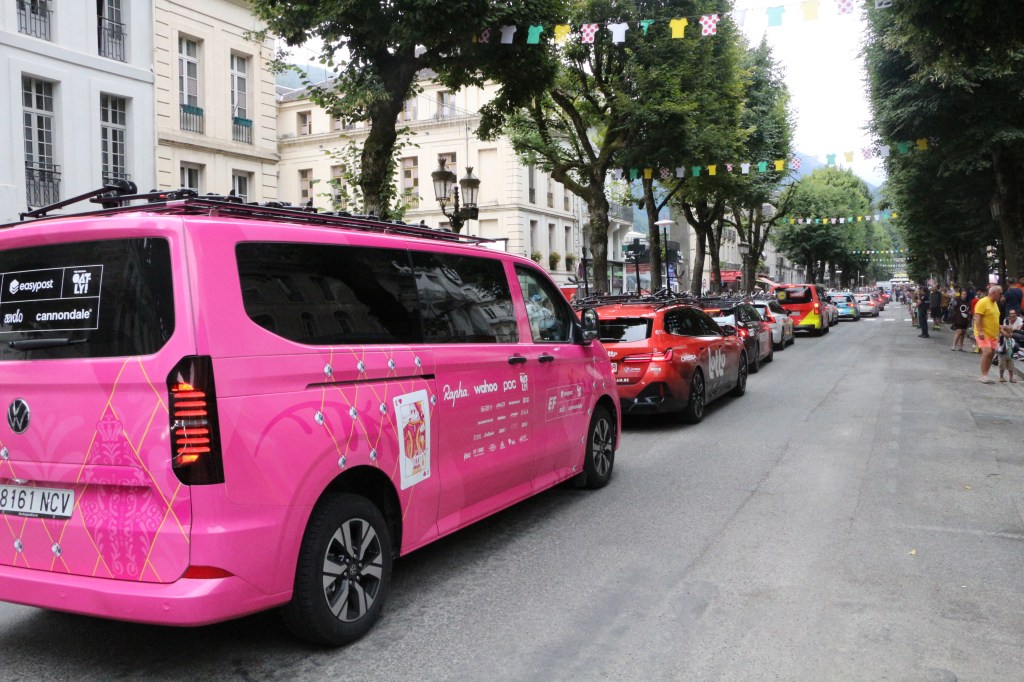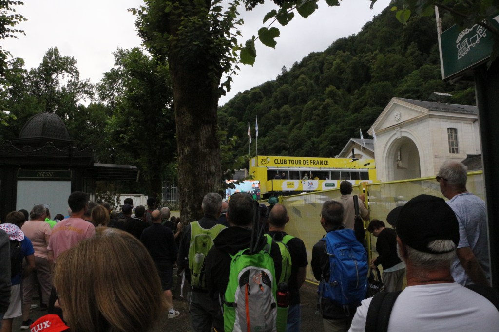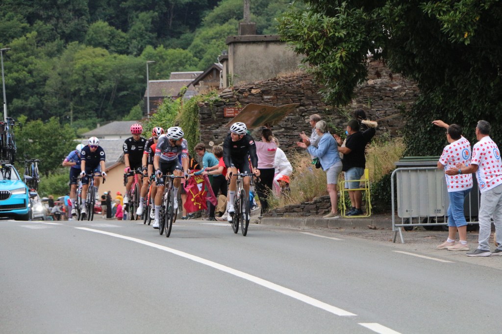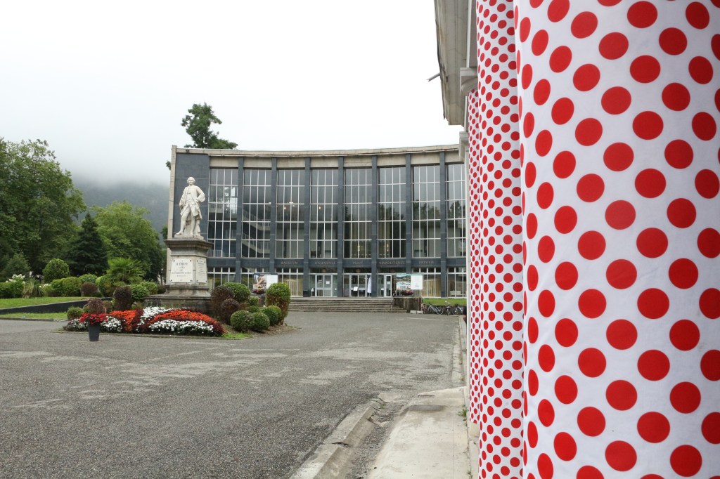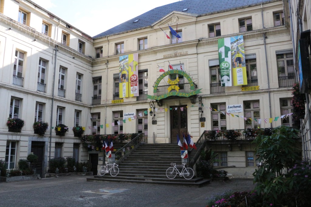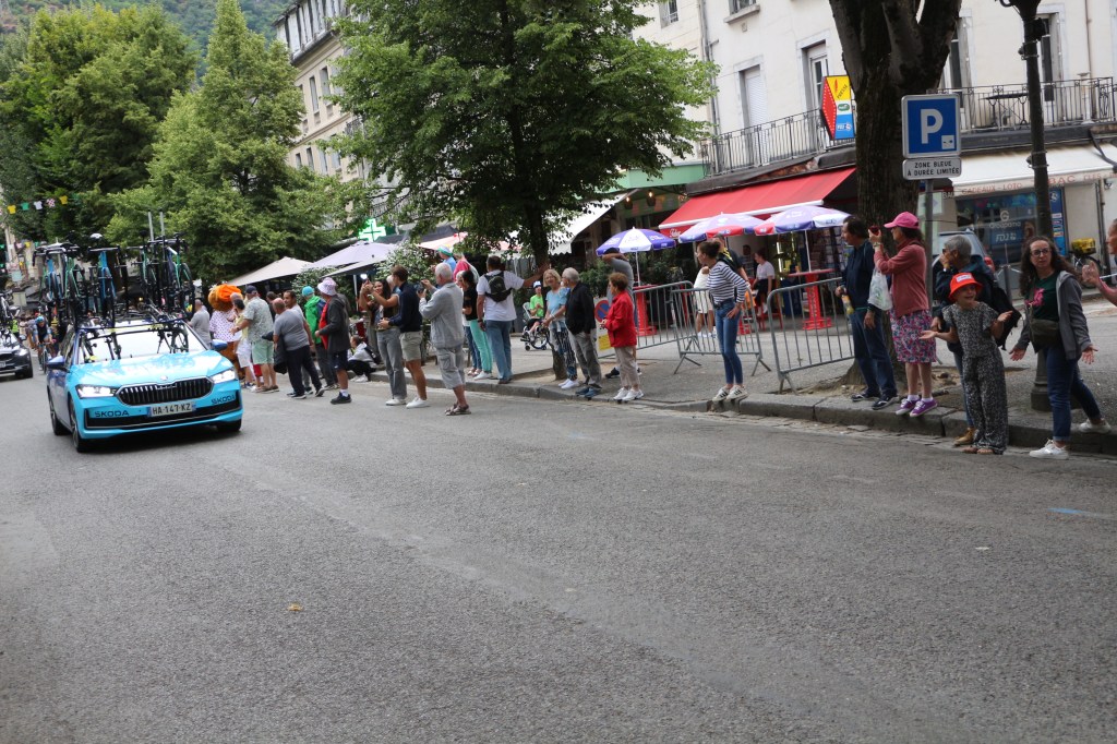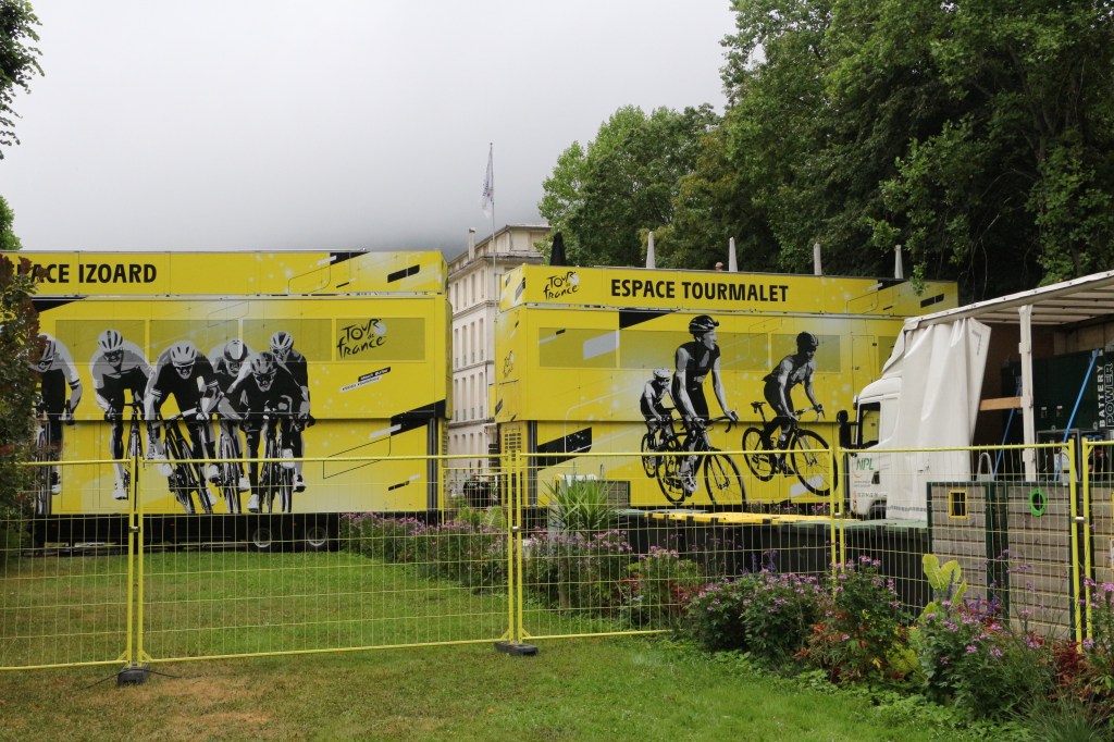 Conclusion de la 14ème étape partie de Pau, Luchon-SuperBagnères a vécu intensément cette énième venue depuis l’acte I en 1910. Habillée aux couleurs du Tour dans de multiples commerces, la cité du Comminges envahie depuis plusieurs jours par de nombreux étrangers, inondée sur de nombreuses artères de cyclistes se prenant sans doute pour les Pogacar de demain, aura vibré comme rarement. Après s’être avalé les cols du Tourmalet et d’Aspin, le peloton, très disséminé dans la descente du col de Peyresourde (7,1 km à 7,8%, 1569 m) a traversé à belle allure les fameuses Allées d’Etigny, coeur de Luchon, avant un ultime effort soutenu avec la montée finale pas anodine et, dans le brouillard à SuperBagnères (12,4 km à 7,3%, 1804 m)… 64 ans après la première arrivée d’étape sur le même site, les plus anciens s’en souviennent encore, sous la tempête, de véritables bourrasques ayant alors balayé tout à la fois banderole d’arrivée, podium et parasols. En cette année 1961, avec un Jacques Anquetil en jaune, c’est l’Italien Imerio Massignan (sacré meilleur grimpeur) qui l’avait du reste emporté. Ce samedi 19 juillet, son successeur avait pour nom Thymen Arensman,un Hollandais de 25 ans, pointé 1 »8 devant un certain Tadej Pogacar, le maillot jaune slovène, enrhumé, davantage dans la gestion que dans la quête d’un nouveau succès d’étape. Mais plutôt que de vous inonder de chiffres, de temps, de classements divers et variés, de primes… et alors que le Tour de France est dans la dernière ligne droite, retour en photos sur cette 14e étape de 182,6 km qui aura laissé des traces à Luchon-SuperBagnères.