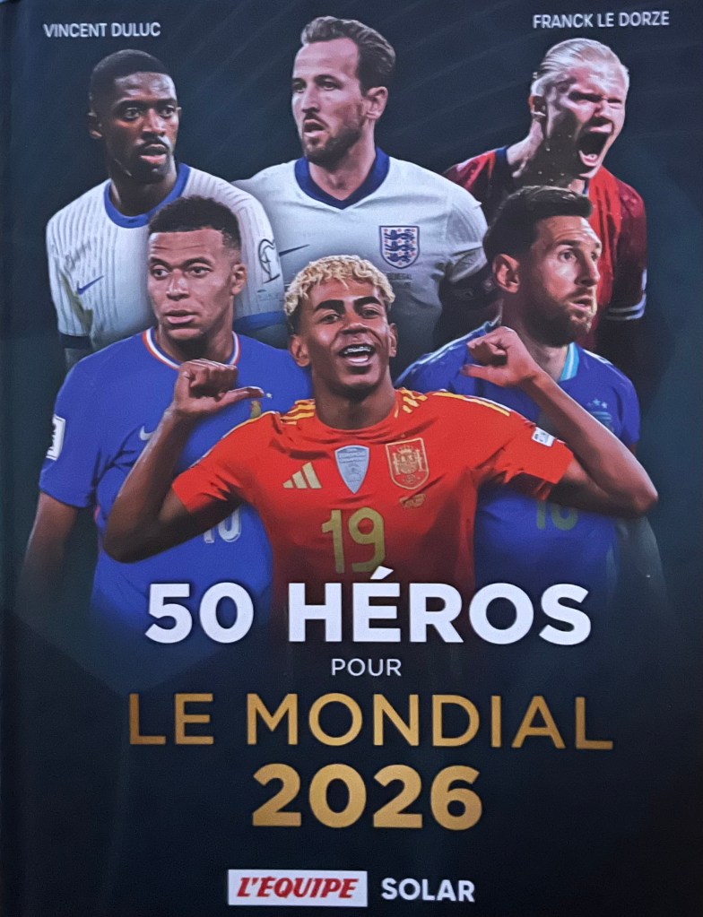Simultanément au tirage au sort, les Editions Solar et L’Equipe ont dégainé avec un « 50 héros pour le Mondial 2026 » co-signé par Vincent Duluc et Franck Le Dorze. Ce classique du genre offre les portraits de 50 héros (Messi, Yamal, Mbappé, Haaland, Kane, Dembélé, Marquinhos, Hakimi, Salah… pour ne citer qu’eux, choisis par les journalistes de L’Equipe, assortis de « stats ». Un immanquable pour les passionnés (127 pages; 21,90 euros).
