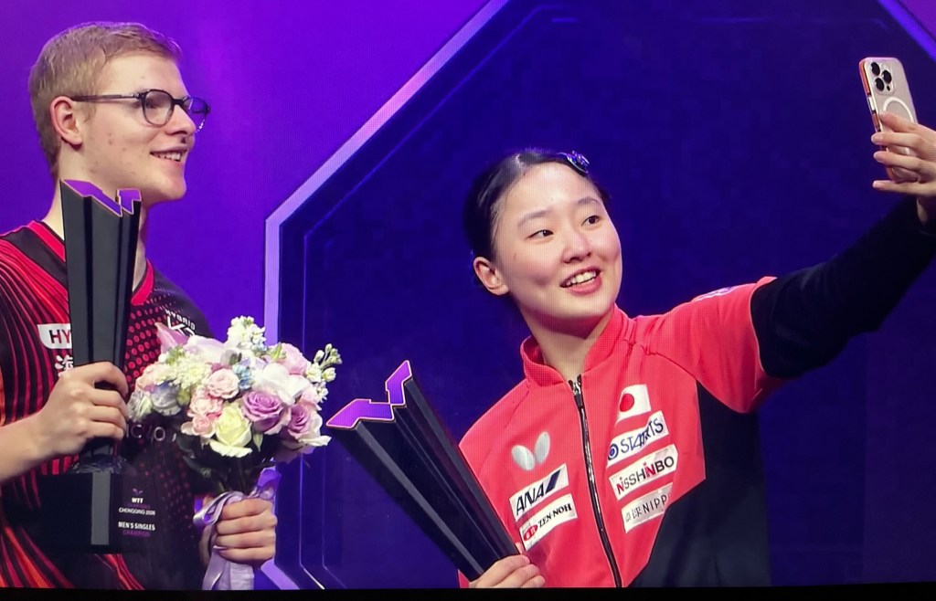 La logique aurait voulu que Félix retrouve son bourreau, le n. 1 mondial Wang Chuqin (0-6 dans leurs têtes à têtes) en demi-finale mais, un peu plus tôt, le n. 1 mondial qui reste donc humain, s’était incliné face à Sora Matsushima (4-2). C’est donc le Japonais (8e mondial) qui se dressait devant lui, au petit matin en heure française. Ceux-celles qui n’ont pas voulu sacrifier quelques heures de sommeil auront manqué un nouveau sommet achevé au bout du bout 4-3 (7-11 11-8 9-11 11-13 11-6 11-6 11-6) en faveur d’un Félix Lebrun à nouveau en mode “remontada”. La finale était là, avec une énième surprise, le puissant Japonais Tomokazu Harimoto, 5e mondial – dont la soeur a remporté le tableau féminin – ayant subi la loi de Wen Ruibo (27e) 2-4 avec un 6e set conclu sur un rare 19-21. Face à un Chinois bénéficaire d’une wild-card pour disputer l’épreuve et… tout un public forcément contre lui, Félix Lebrun a été grand, immense même, solide, tout en confiance pour infliger un 4-1 net et sans bavure (11-5 11-8 9-11 11-7 13-11) en 37 minutes au « local ». Un deuxième titre en Champions (après celui de Montpellier en 2024) qui prend toute sa signification en étant acquis sur la « terre du ping », d’autant que le n. 1 de l’Alliance Nîmes Montpellier TT restera comme le premier non Chinois inscrivant son nom au palmarès d’une épreuve en Chine depuis la création du WTT. De toute évidence une étape supplémentaire dans la carrière du champion français, plus que jamais invité à la table des grands. Et s’il a évolué tant physiquement, mentalement que techniquement, Félix est resté le même par ailleurs. De retour lundi dans l’Hérault, il s’est fendu d’une escapade furtive au domicile parental avant de regagner son domicile montpelliérain, proche du fief de l’ANMTT qu’il a rejoint ce mardi 17 mars pour se muer en premier supporter de son équipe – composée d’Alexis Lebrun, Antoine Hachard et Grégoire Jean – vainqueur de Thorigné-Fouillard (3-1) pour le compte de la 15e journée de Pro A mais toujours pas dans le Top 4, synonyme de demi-finales. Une salle Achille pleine comme un oeuf, une belle ambiance, Félix venu avec son trophée « immortalisé » en photos avec moult spectateurs… la magie du marchand de bonheur a encore agi. Entre les titres cumulés des frérots lors de ce premier trimestre 2026 et l’anniversaire à venir de leur soeur Margaux, il y a toutes les raisons de fêter ces événements avec une petite coupe de champagne. Reste à trouver un créneau entre les échéances sportives nationales et internationales (Coupe du Monde individuelle à Macao du 30 mars au 5 avril), ça ne sera pas le plus simple…